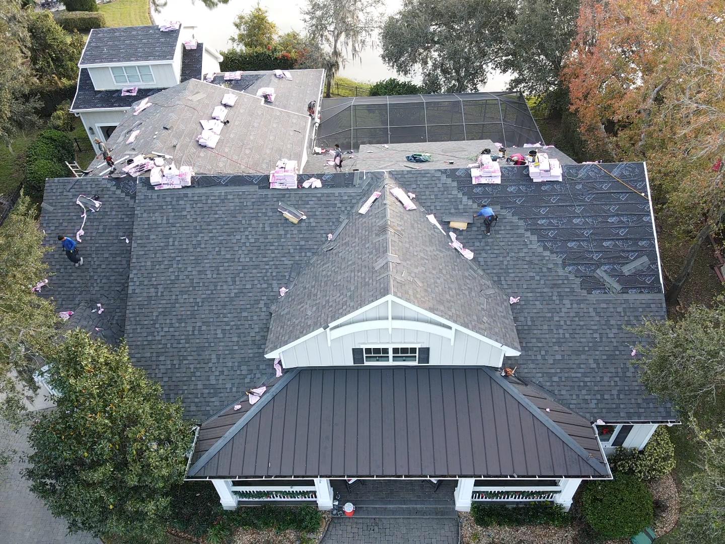 Next, they put on a water-resistant underlayment for extra moisture protection. They also add flashing around chimneys and vents. This stops water from getting in.